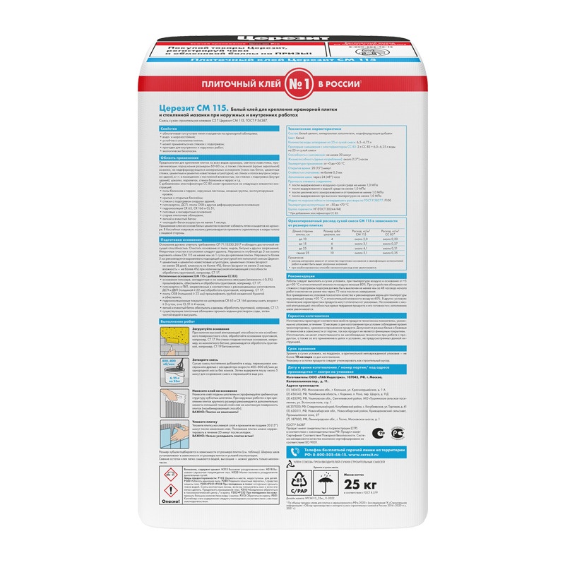 Клей для мозаики и мрамора Церезит СМ 115 белый (25 кг)