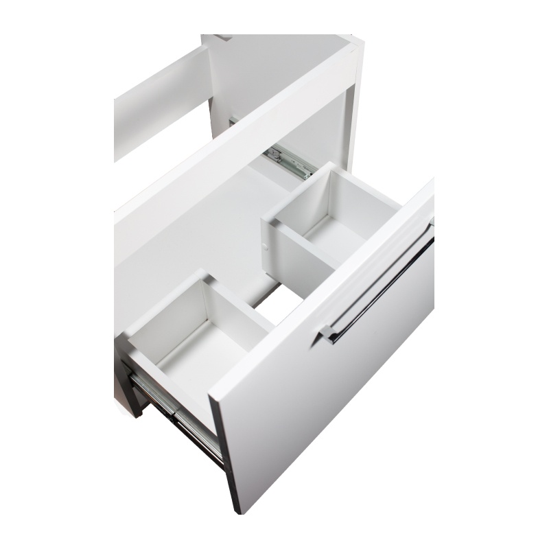 • Стильный дизайн – белый глянцевый фасад с хромированной ручкой-скобой впишется в любой интерьер.