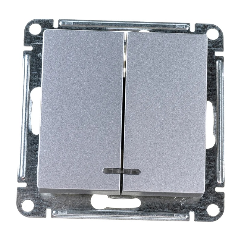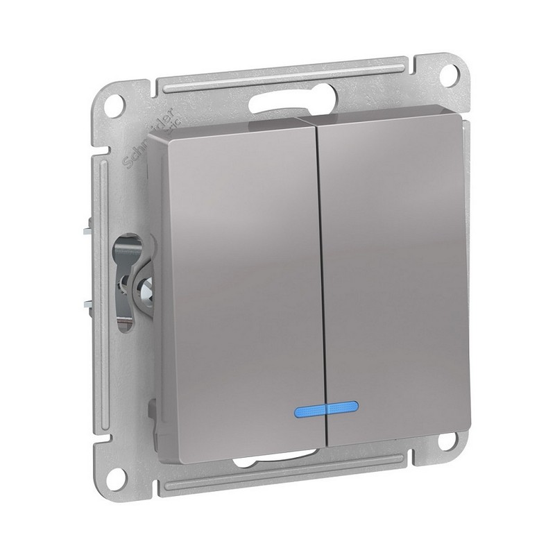 Выключатель с/у Atlasdesign ATN000353, 2 клавиши, с/инд, алюминий