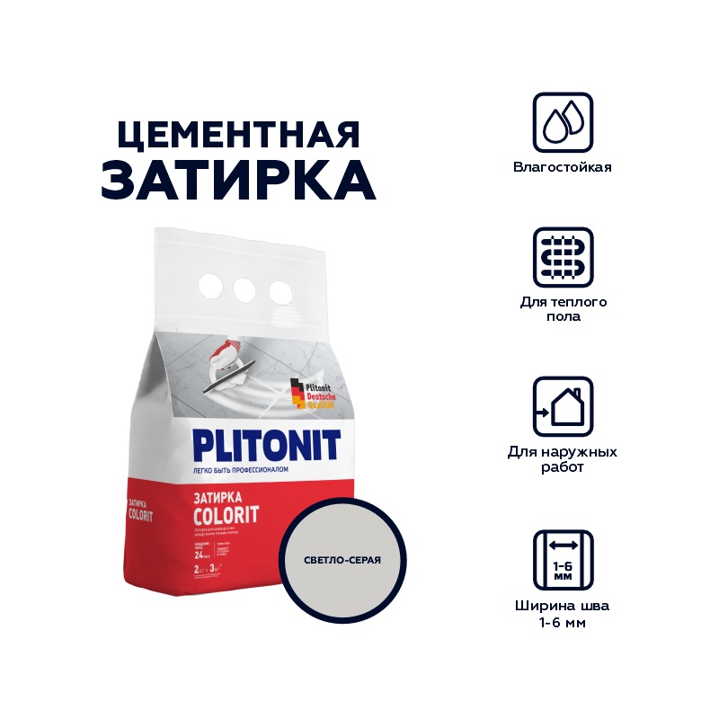 Затирка Plitonit Colorit светло-серая, 2 кг