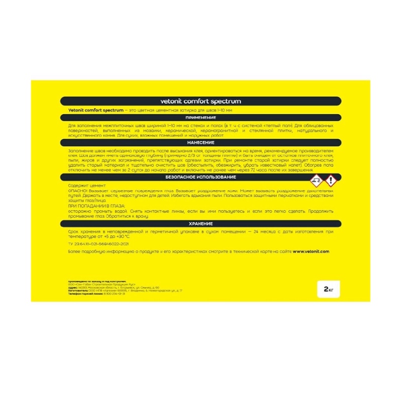 Затирка Vetonit Comfort Spectrum 01 белый, 2 кг