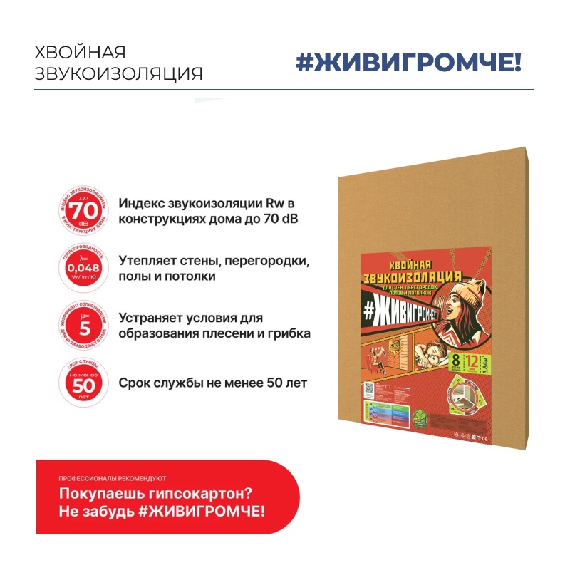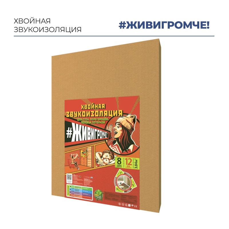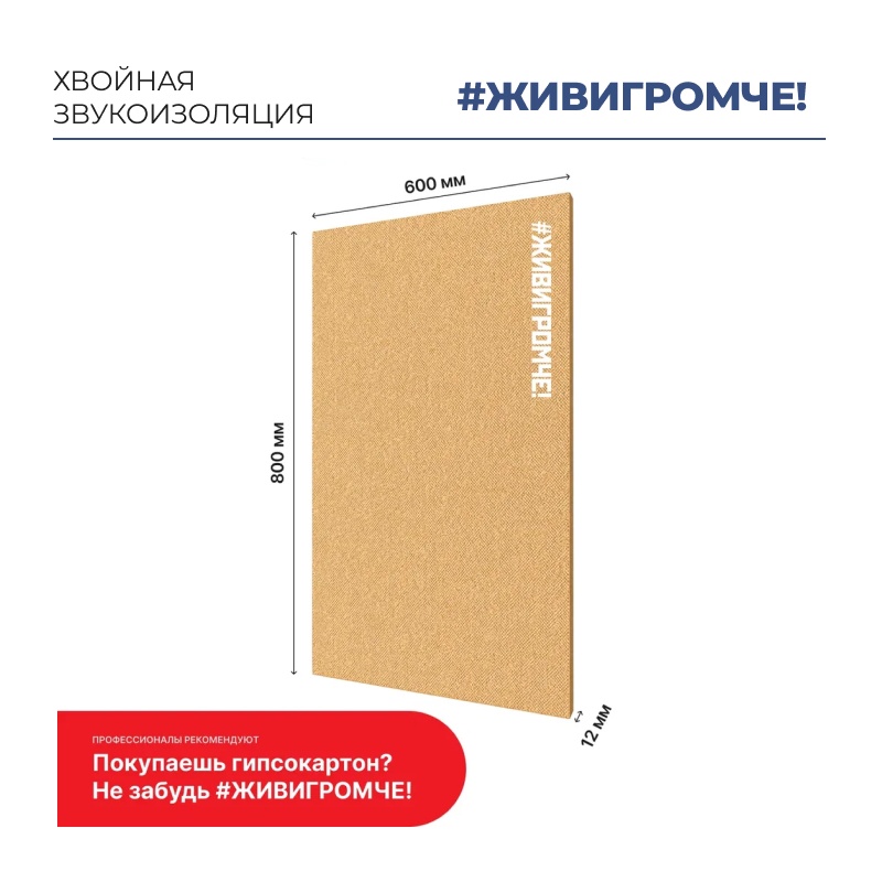 Звукоизоляция хвойная Beltermo ЖивиГромче 800х600х12 мм (уп.8 шт) (3,84 м2)